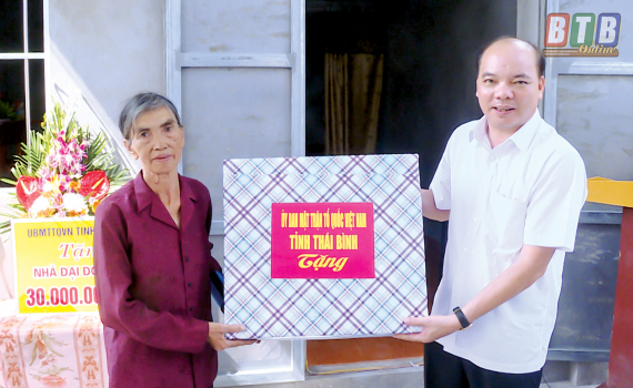 Đồng chí Đặng Thanh Giang, Ủy viên Ban Thường vụ Tỉnh ủy, Chủ tịch Ủy ban MTTQ tỉnh tặng quà hộ nghèo xã Phú Xuân (thành phố Thái Bình).