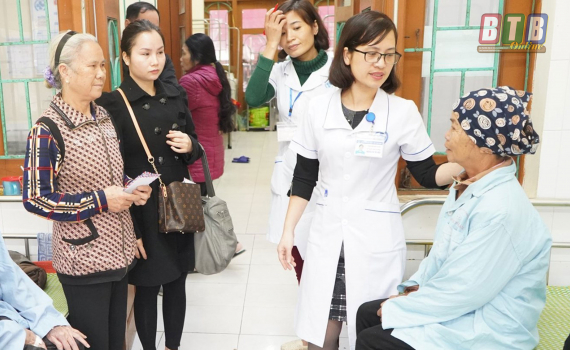 Cán bộ y tế và các nhà hảo tâm chia sẻ, động viên người bệnh tại Trung tâm Ung bướu,