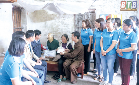 Nhóm thiện nguyện đền mẫu Sáo Đền thăm hỏi, tặng quà gia đình bà Nguyễn Thị Thiết, thôn Kiều Thần, xã Song An (Vũ Thư).