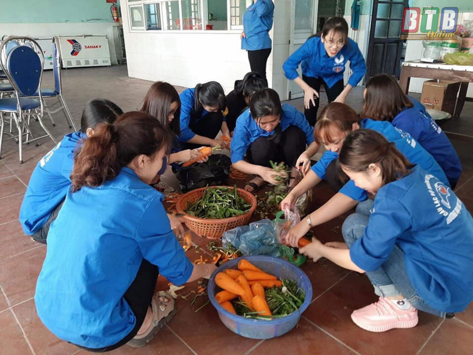 Chung tay chuẩn bị bữa ăn từ thiện tại Trung tâm Bảo trợ người có công.