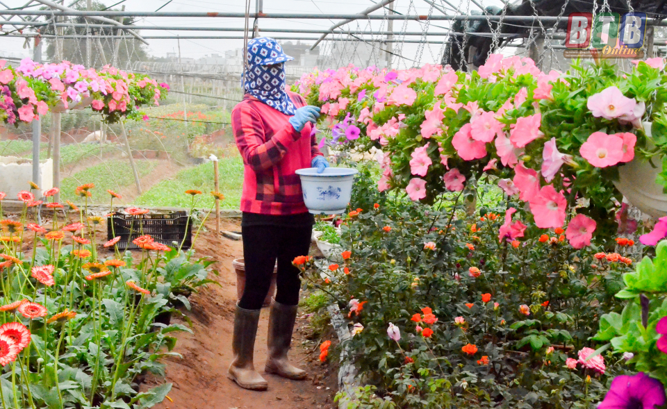 Theo những người trồng hoa, nghề chăm sóc hoa nhìn bên ngoài thì đơn giản song lại chỉ dành cho những ai thật sự kiên trì và đam mê vì bản chất “đỏng đảnh” chung của các loài hoa là rất khó chăm sóc. Vừa hăng say làm việc, anh Vũ Đức Song, thôn Tống Văn, một trong những “ông trùm” về kinh nghiệm trồng hoa của xã Vũ Chính cho biết: Trồng hoa dịp tết đòi hỏi sự tỉ mỉ, công phu hơn các dịp khác trong năm. Để có vườn hoa tết đẹp, ưng ý, người trồng hoa phải dày công chăm sóc; ngoài việc phải xuống giống đúng thời vụ còn phải chăm sóc kỹ lưỡng với những quy trình tưới nước, bón phân mỗi ngày, thường xuyên tỉa nhánh, bấm ngọn để cụm hoa được tròn trịa, cho ra nhiều nhánh, nhiều bông. Mỗi loại hoa có những cách chăm sóc khác nhau đòi hỏi người trồng hoa phải thuộc lòng trong đầu. Vụ hoa tết năm nay, gia đình anh Song trồng chủ yếu là hoa ly, tuy líp, dạ yến thảo, cúc mâm xôi, hồng cổ trên diện tích 7.000m2, tăng gấp 2 lần diện tích vụ hoa tết năm 2019. Mặc dù diện tích tăng nhưng vẫn duy trì số lao động, do gia đình anh Song đã đầu tư, áp dụng công nghệ tưới thông minh vào sản xuất, nhất là đầu tư hệ thống tưới nhỏ giọt đối với các loại hoa chậu. Hệ thống này đo được cả độ ẩm không khí, nhiệt độ, ánh sáng, độ ẩm của đất, kết nối mạng trên điện thoại nên dù không có mặt ở vườn hoa, anh vẫn điều khiển tưới nước khi cần thiết. Qua đó tiết kiệm nhân lực, hoa được tưới đồng đều nên cho hiệu quả kinh tế cao. Dự kiến vụ hoa tết năm nay mang về nguồn thu trên 600 triệu đồng cho gia đình anh Song.