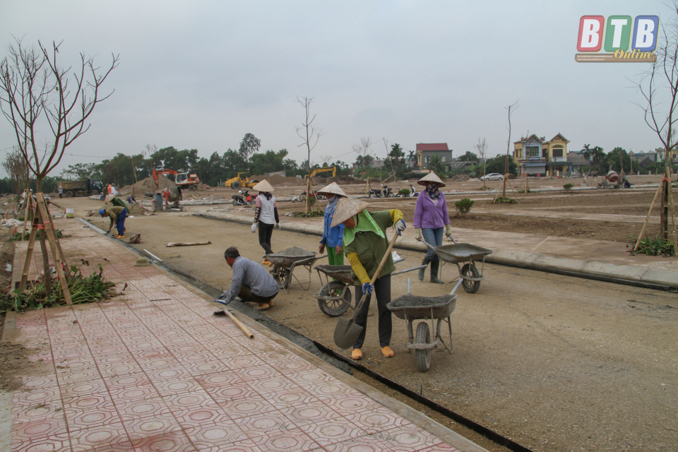 Cách một cánh đồng, khu tái định cư có tổng diện tích 5,21ha, với các hạng mục san lấp mặt bằng khu đất dân cư quy hoạch, hạ tầng kỹ thuật, cây xanh, vỉa hè, hệ thống thoát nước ngầm, điện chiếu sáng... phục vụ di dân xóm 10 đã được hoàn tất. Trên công trường những ngày cuối năm, chia tay những người công nhân để chuẩn bị về đón tết, anh Lưu Thế Chuyển, Công ty TNHH Xây dựng Tuấn Thành, phó chỉ huy công trường cho biết: Khu tái định cư không chỉ có ý nghĩa quan trọng với người dân mà còn thể hiện quyết tâm và trách nhiệm của nhà đầu tư và chính quyền địa phương khi đẩy nhanh tiến độ của dự án. Sau khi nhận nhiệm vụ, từ tháng 6/2019, công ty chúng tôi đã huy động hơn 100 công nhân cùng hệ thống máy móc, trang thiết bị hiện đại, chia làm 3 đội thi công, gấp rút hoàn thành các hạng mục theo đúng thời gian cam kết, đồng thời bảo đảm chất lượng công trình để phục vụ dự án. Trong quá trình thi công, chúng tôi luôn nhận được sự hợp tác, giúp đỡ của chính quyền địa phương, bà con nhân dân thường xuyên ra theo dõi tiến độ và động viên anh em công nhân trên công trường. Với những người làm xây dựng, anh Chuyển mong người dân xóm 10 sớm được về an cư trên khu tái định cư, để sang năm, bà con sẽ vui xuân, đón tết đầm ấm và hạnh phúc trong những ngôi nhà mới khang trang.