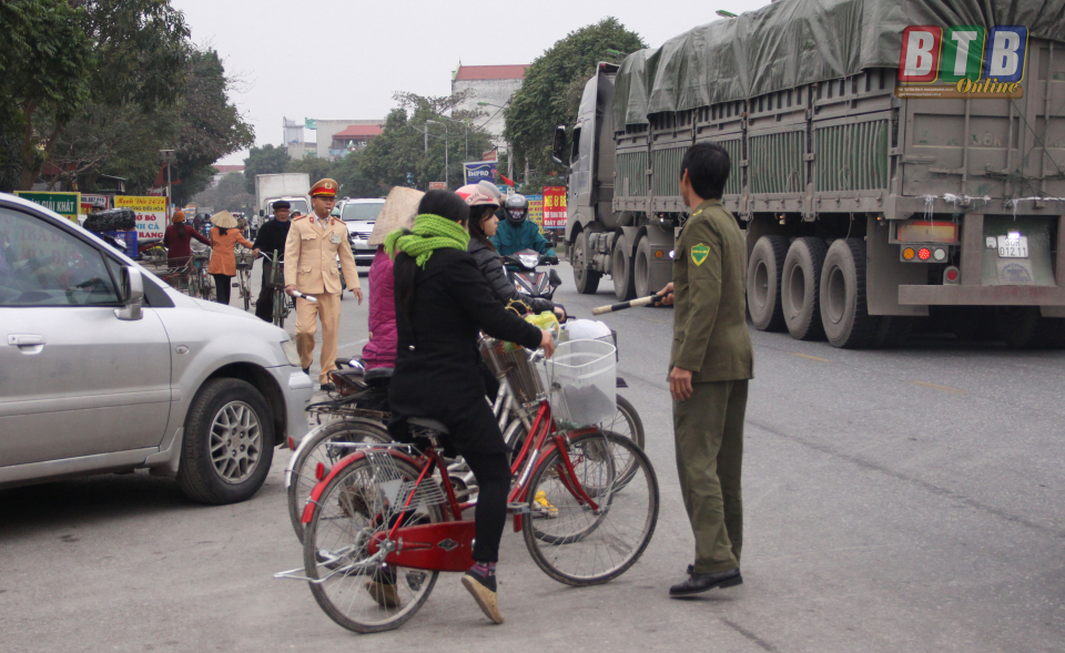 Ngoài lập chốt tại các nút giao có nguy cơ xảy ra ùn tắc giao thông, Phòng Cảnh sát giao thông còn bố trí lực lượng tuần tra lưu động liên tục trên tuyến, dùng loa trên xe tuần tra kiểm soát tuyên truyền, nhắc nhở các chủ hộ kinh doanh, buôn bán ven quốc lộ 10, chủ các phương tiện tham gia giao thông chấp hành nghiêm Luật Giao thông đường bộ, không để chướng ngại vật, hàng hóa lấn chiếm lòng, lề đường; không dừng, đỗ phương tiện trái quy định gây cản trở giao thông…