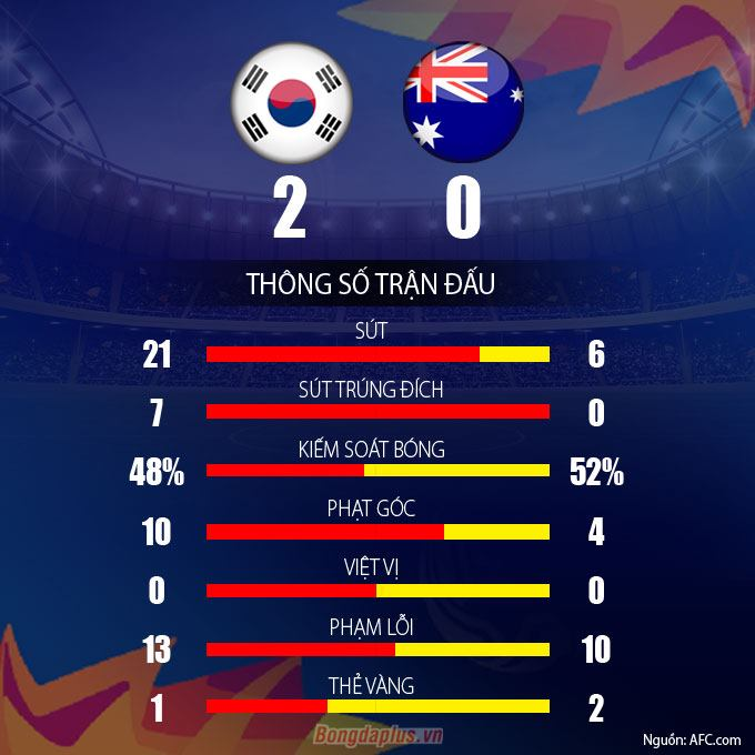 Đến phút 77, tiền đạo vừa vào sân thay người là Lee Dong-Kyeong xử lý khôn khéo đầu vòng cấm rồi tung ra cú đá chân trái đập cột trong bay vào lưới. 2-0 cho U23 Hàn Quốc và đó cũng là kết quả cuối cùng của trận này.