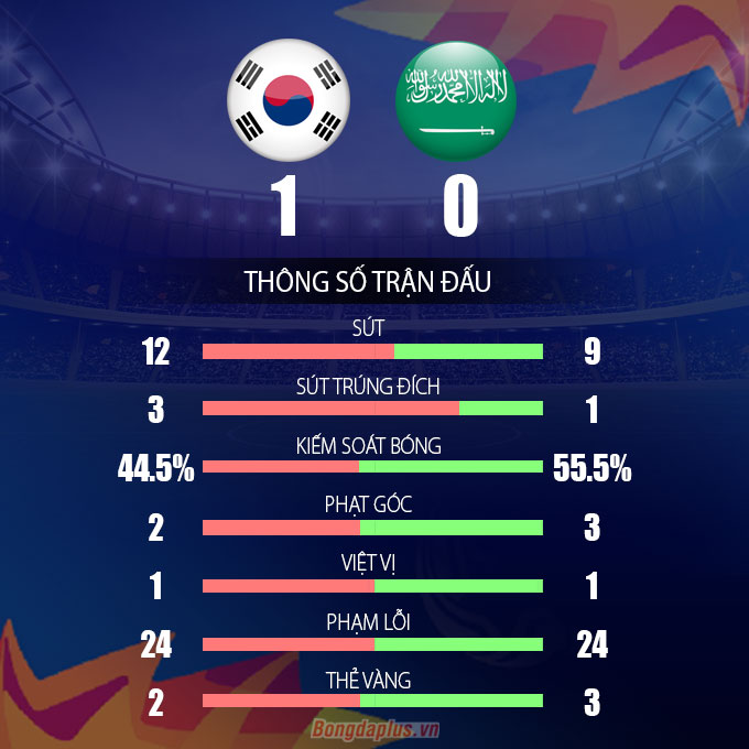 Không thể ghi bàn trong 90 phút thi đấu chính thức, hai đội đành kéo nhau vào 2 hiệp phụ. Những tưởng trận đấu sẽ phải giải quyết bằng loạt luân lưu thì phút thứ 113, trung vệ Jeong Tae-wook đã bật cao đánh đầu từ khoảng cách 5 mét hạ gục thủ môn Al Yami.