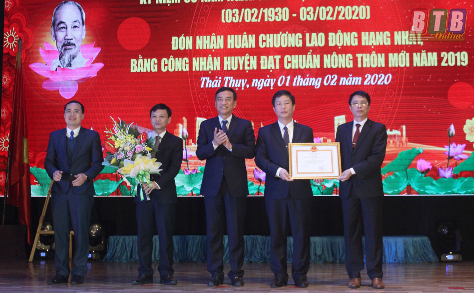 Thừa uỷ quyền của Chủ tịch nước và Thủ tướng Chính phủ, đồng chí Nguyễn Hồng Diên, Ủy viên Trung ương Đảng, Bí thư Tỉnh ủy, Chủ tịch HĐND tỉnh đã trao Huân chương Lao động hạng Nhất cho huyện Thái Thụy vì có thành tích trong xây dựng, bảo vệ Tổ quốc, giai đoạn 2013 - 2018; đồng chí Đặng Trọng Thăng, Phó Bí thư Tỉnh ủy, Chủ tịch UBND tỉnh trao bằng công nhận huyện Thái Thụy đạt chuẩn quốc gia huyện NTM.