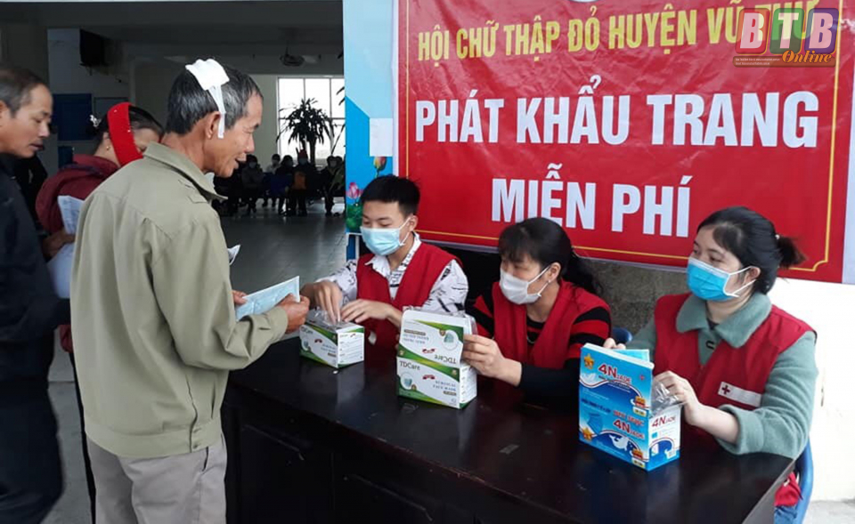 Hội Chữ thập đỏ huyện Vũ Thư cấp phát khẩu trang miễn phí cho bệnh nhân tại Bệnh viện Đa khoa huyện Vũ Thư