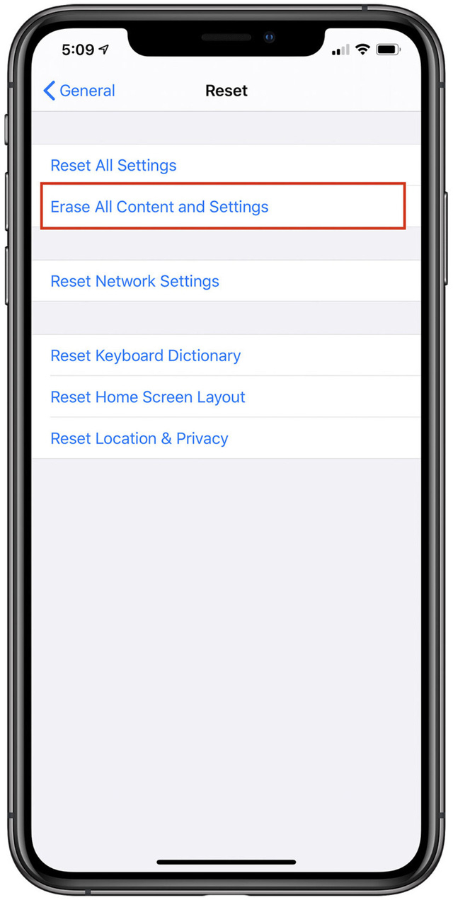 - Erase All Content and Settings - Factory Reset: Đây là tùy chọn khôi phục về cài đặt gốc, cho phép bạn xóa toàn bộ dữ liệu và cài đặt trên máy, đưa máy trở về trạng thái như khi mới mua.