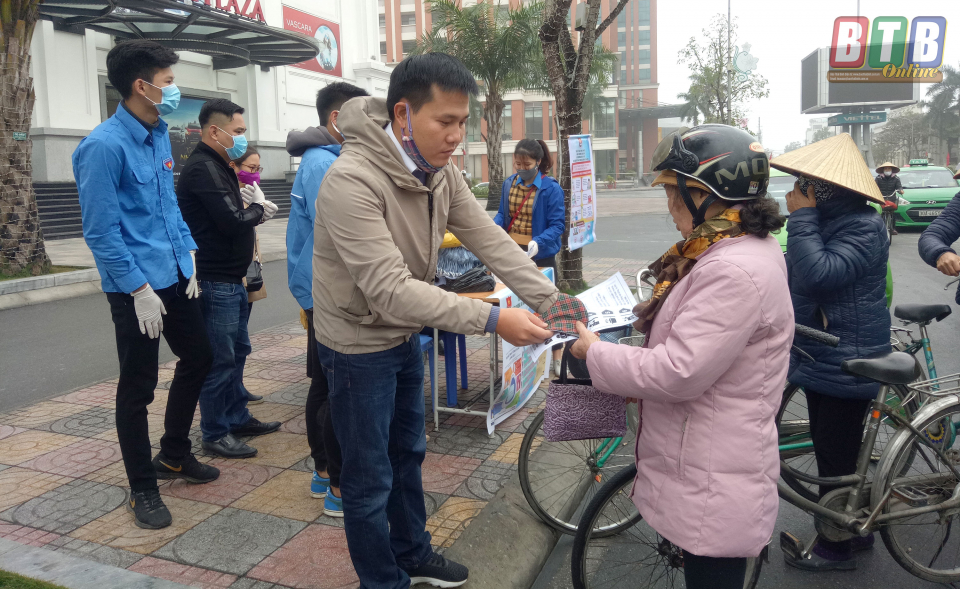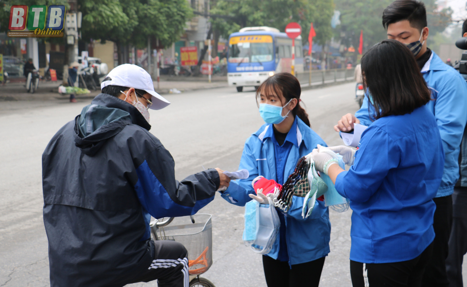 Tại các điểm: Số 7, đường Lê Lợi, phường Lê Hồng Phong; Bệnh viện Nhi tỉnh Thái Bình, Số 2, Phố Tôn Thất Tùng, phường Trần Lãm; cổng chính Trung tâm Thương mại Vincom Plaza, Số 460, phố Lý Bôn, phường Đề Thám và Bến xe khách Thái Bình, đoàn viên thanh niên của các đơn vị đã phát 6.500 khẩu trang miễn phí, hướng dẫn đeo khẩu trang đúng cách và tuyên truyền, phát 6.500 tờ rơi cho người dân về các biện pháp phòng chống dịch bệnh viêm đường hô hấp cấp do chủng mới của virus corona gây ra.