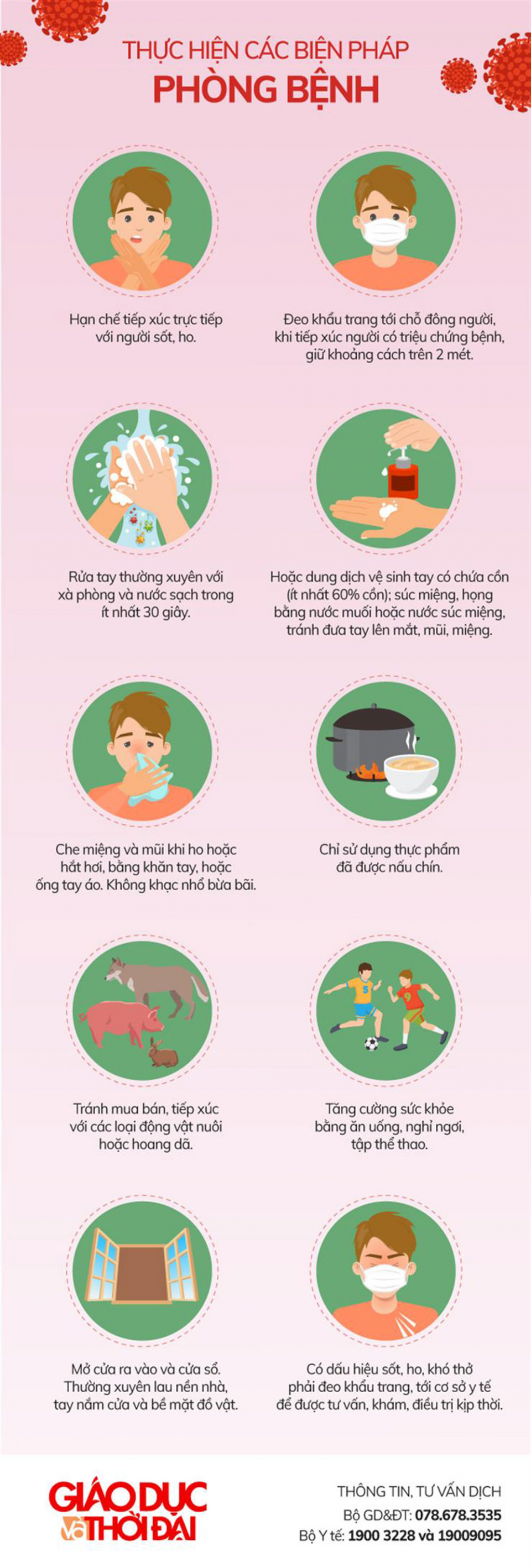 Bộ Giáo dục và Đào tạo yêu cầu các sở giáo dục và đào tạo, các nhà trường tuyên truyền rộng rãi cẩm nang tới toàn thể cán bộ, giáo viên, nhân viên, học sinh nhằm hạn chế tối đa những ảnh hưởng của dịch bệnh tới sức khoẻ.