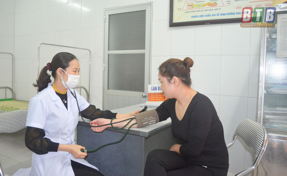 Khám chữa bệnh cho nhân dân tại Trạm Y tế phường.