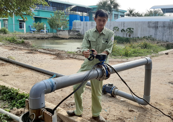 Nhân viên công ty cấp nước vận hành giếng khoan. Ảnh: XC