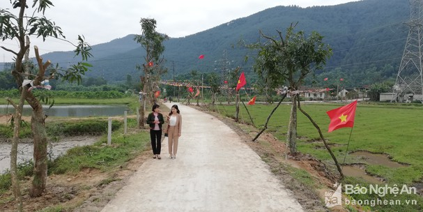 Con đường hoàn thành không chỉ giúp người dân đi lại thuận tiện mà còn thắt chặt thêm tình đoàn kết giữa hai xóm, hai xã Diễn Lộc - Diễn Phú. Ảnh: Mai Giang
