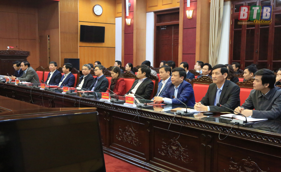Các đồng chí: Ngô Đông Hải, Ủy viên dự khuyết Trung ương Đảng, Phó Bí thư thường trực Tỉnh ủy; Nguyễn Tiến Thành, Phó Bí thư Tỉnh ủy dự buổi làm việc.
