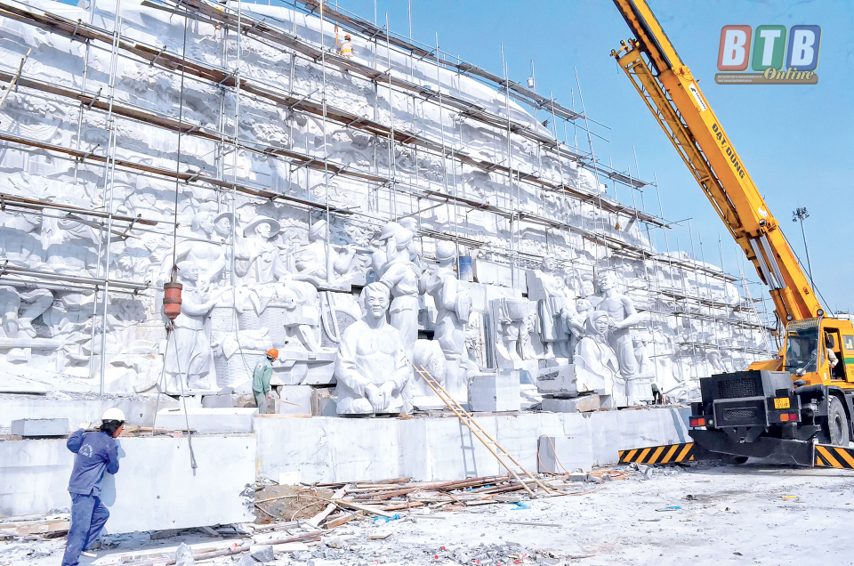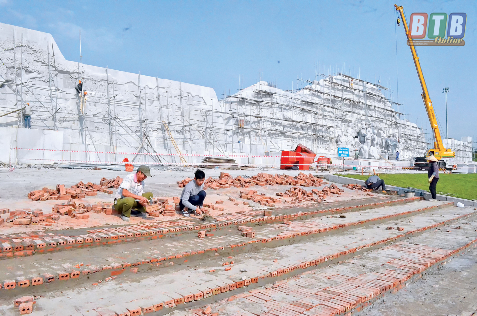 Phó Chủ tịch UBND thành phố Thái Bình Nguyễn Anh Tuấn cho biết: Thực hiện chỉ đạo của Tỉnh ủy, UBND tỉnh về kỷ niệm 130 năm ngày thành lập tỉnh và ngày hội Văn hóa, Thể thao và Du lịch tỉnh Thái Bình, cũng như chỉ đạo trực tiếp của đồng chí Nguyễn Hồng Diên, Ủy viên Trung ương Đảng, Bí thư Tỉnh ủy, Chủ tịch HĐND tỉnh sau khi kiểm tra thực tế công trình, UBND thành phố đã chỉ đạo quyết liệt, triển khai đồng bộ các giải pháp để hoàn thành công trình theo đúng kế hoạch đề ra. Yêu cầu đơn vị thi công đẩy nhanh tiến độ thực hiện các khối lượng hạng mục công trình còn lại. Giao Ban Quản lý dự án xây dựng cơ sở hạ tầng thành phố theo dõi, giám sát, báo cáo hàng ngày về những khó khăn, vướng mắc để có sự chỉ đạo, tháo gỡ kịp thời của lãnh đạo UBND thành phố; yêu cầu đơn vị tư vấn giám sát có mặt thường xuyên, liên tục tại công trường để bảo đảm chất lượng thi công cũng như an toàn lao động trong quá trình thực hiện. Yêu cầu đơn vị thi công tăng cường thiết bị, nhân lực để tổ chức thực hiện tăng ca và thực hiện các công việc độc lập, đồng thời như ốp đá hai bên lối lên, trồng cỏ, hoa phía sau tượng đài, hoàn thành chỉnh sửa chi tiết các nhóm tượng, phù điêu bảo đảm chất lượng cũng như tiến độ thời gian đề ra.