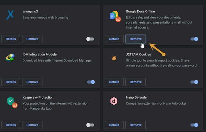 Vì vậy hãy kiểm tra và xóa đi các tiện ích mở rộng không cần thiết để tăng tốc cho trình duyệt. Bạn nhập dòng chrome://extensions vào thanh địa chỉ và nhấn Enter để truy cập vào phần quản lý các tiện ích mở rộng. Sau đó chỉ việc bấm Remove để xóa đi các tiện tích không cần thiết.
