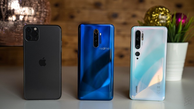 iPhone 11 Pro Max, Realme X2 Pro và Xiaomi Mi Note 10. Ảnh: Soyacincau.