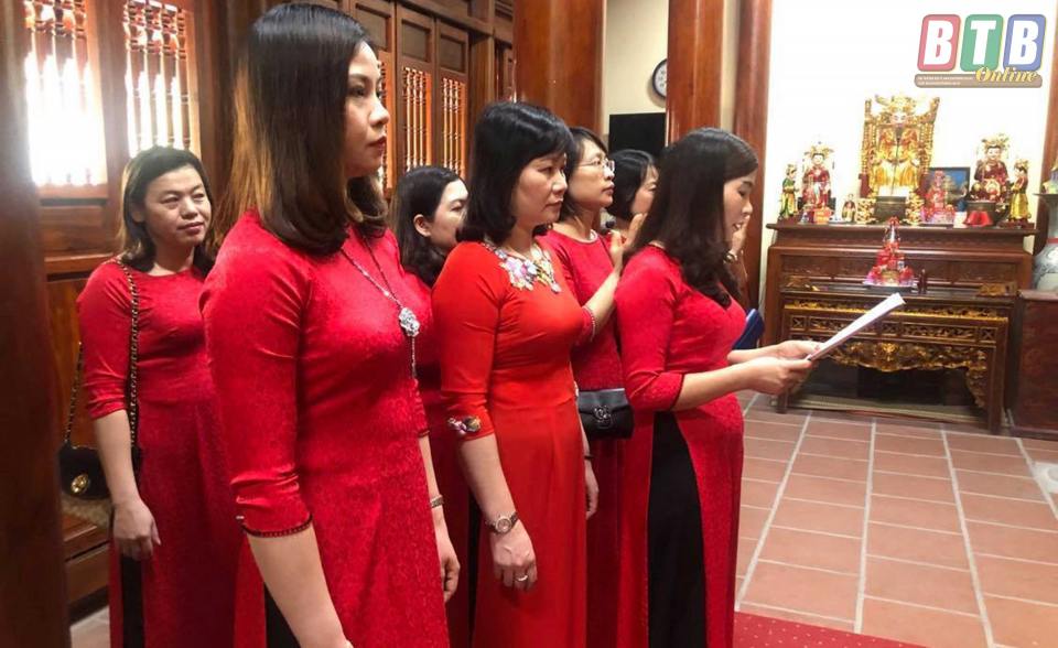 Ban Nữ công các cơ quan Tỉnh ủy báo cáo kết quả phong trào thi đua 2 giỏi tại Đền thờ Hai Bà Trưng