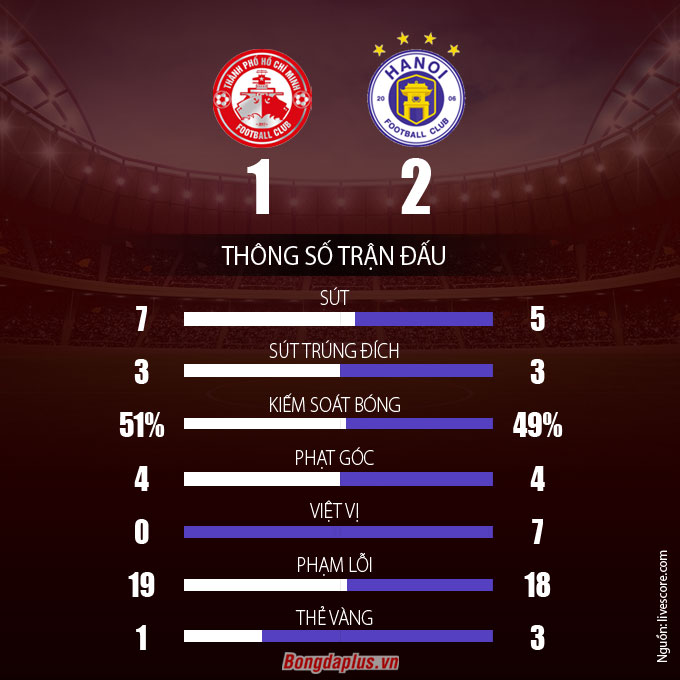 Bước sang hiệp 2, TP.HCM liên tục tăng cường hàng tiền đạo. Nhưng quả thực, khi Hà Nội FC đã dẫn bàn trước, rất khó để đối phương lật ngược thế cờ. Đội bóng thủ đô kiểm soát thế trận trong cả hiệp 2. Họ thậm chí còn có những cơ hội để nới rộng khoảng cách về tỷ số.