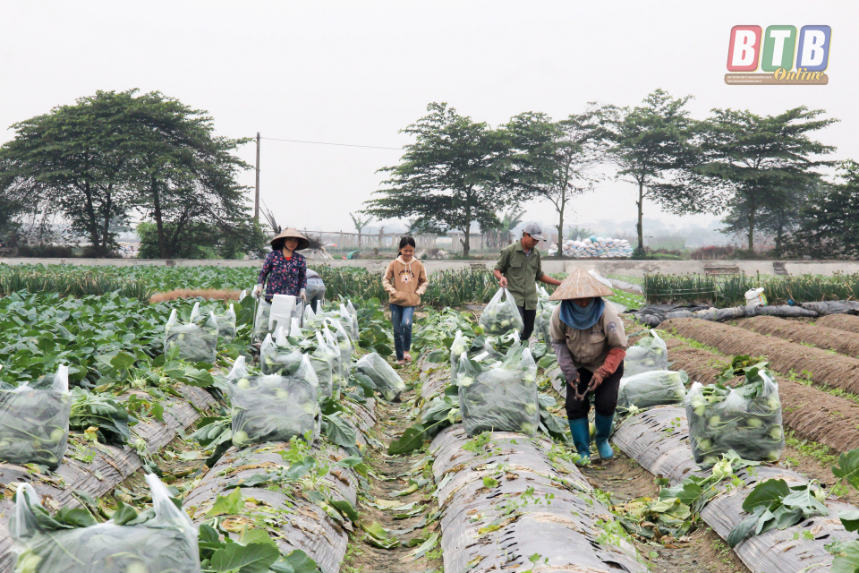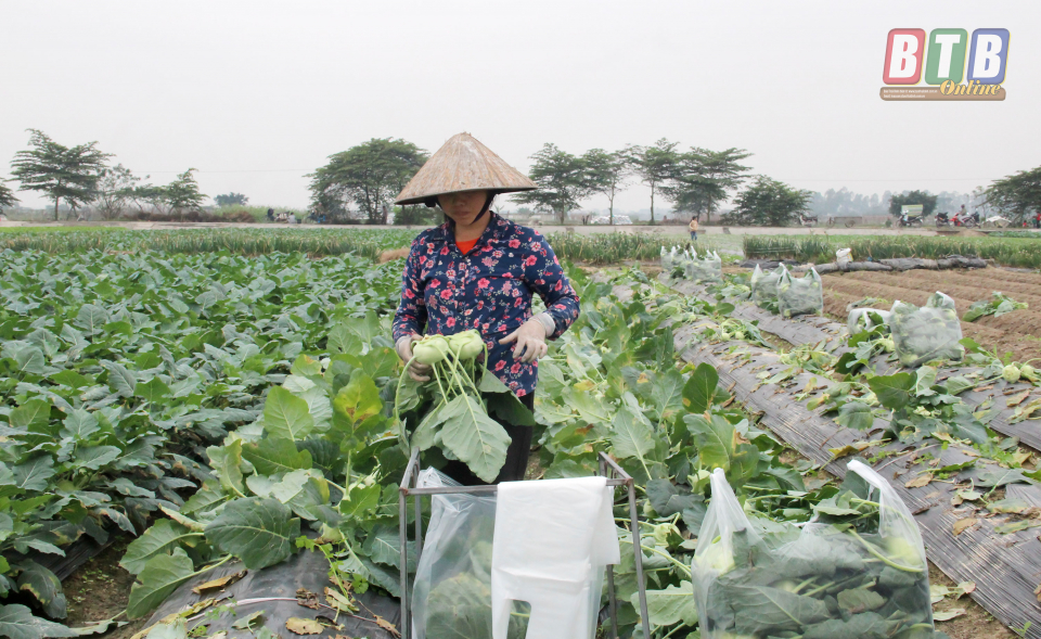 Về vùng chuyên canh rau màu xã Quỳnh Hải (Quỳnh Phụ) thời điểm này, không khí lao động hết sức rộn ràng, bà con ra đồng rất đông. Trên những ruộng rau được thu hoạch, nông dân đang tất bật đóng gói để kịp những chuyến xe của thương lái đến thu mua. Rau xanh đang được giá, lãi lớn, nông dân phấn khởi, đầu tư, chăm chút nhiều hơn cho cây trồng. Trồng 1 mẫu su hào phục vụ dịp trước và sau tết Nguyên đán, gia đình anh Nguyễn Văn Dũng, thôn An Phú 1 có nguồn thu không nhỏ nhờ trồng rau. “Dịp này, các loại rau bán rất chạy mà giá lại tăng gấp 2 - 3 lần ngày thường, thậm chí cao hơn cả tết. Đây là điều hiếm thấy với người trồng rau xưa nay. Hiện mỗi bịch su hào (20 củ) thương lái thu mua với giá 130.000 đồng. Với mức giá này, trừ mọi chi phí, mỗi sào tôi thu lãi khoảng 10 triệu đồng, trong thời gian chưa đầy 2 tháng. Đây có lẽ là khoản thu nhập lớn nhất mà tôi có được từ trồng rau, bù lại cho khoảng thời gian giá rẻ trước đó” - Anh Dũng phấn khởi chia sẻ.