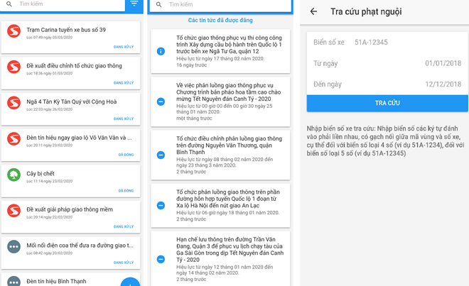 Tra cứu: Đây là một mục cởi mở cho phép bạn tra cứu các công trình giao thông trong thành phố do đơn vị nào xây dựng và giấy phép công trình, giấy phép lưu thông, tra cứu lỗi phạt nguội dựa theo biển số xe, tra cứu phù hiệu, tra cứu giấy phép kinh doanh vận tải và thủ tục cấp đổi giấy phép lái xe.