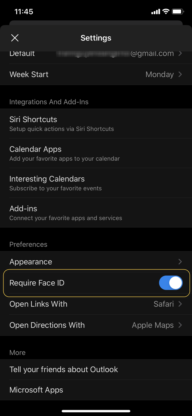 Cách khóa bảo mật ứng dụng Outlook trên iOS với Touch/Face ID