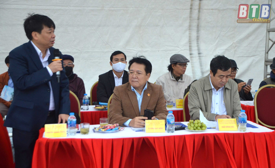 Đồng chí Nguyễn Quang Hưng, Tỉnh ủy viên, Phó Chủ tịch UBND tỉnh, Chủ tịch Hội đồng nghiệm thu phát biểu tại buổi nghiệm thu công trình.