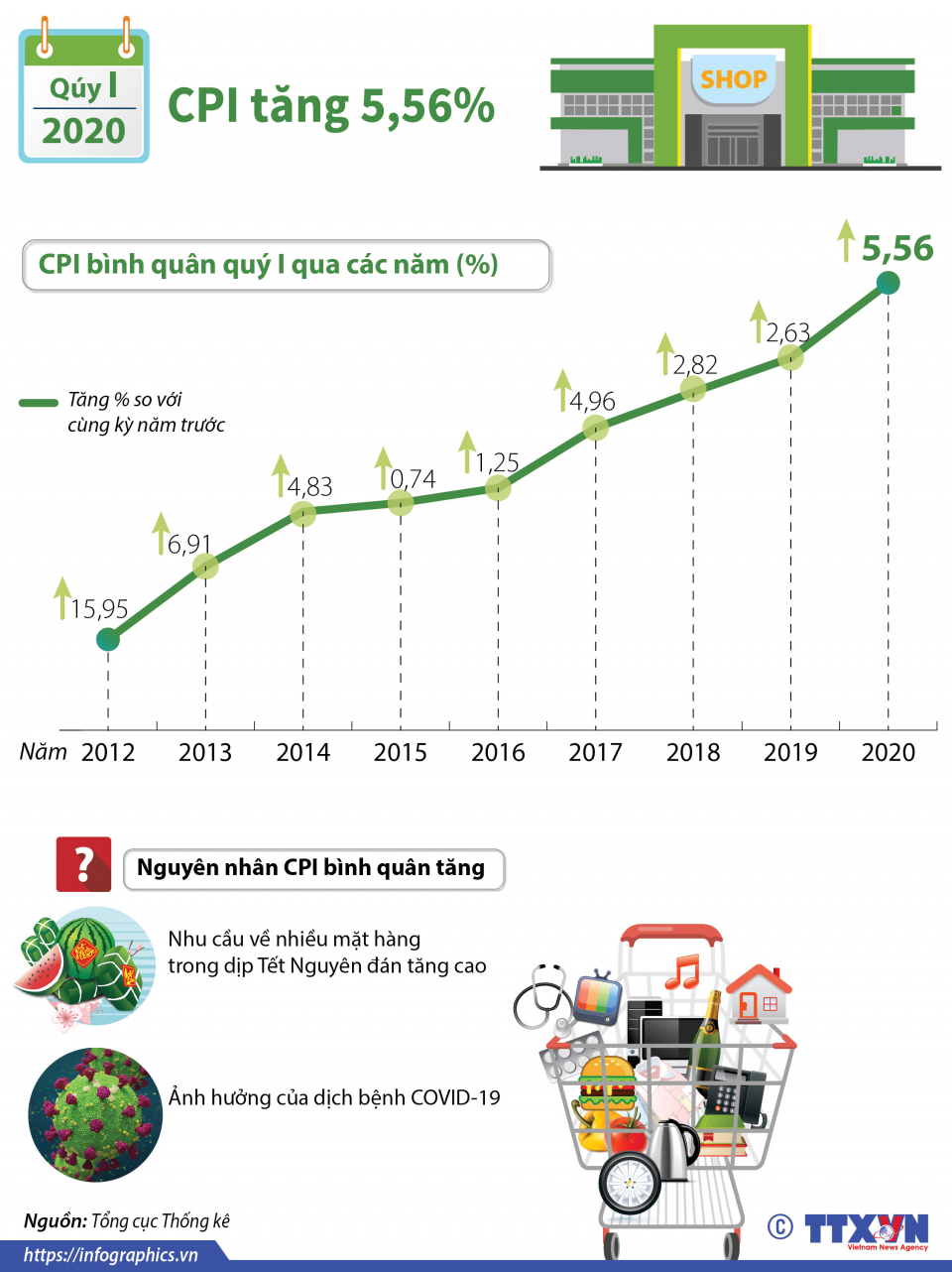 Quý I/2020, CPI tăng 5,56%
