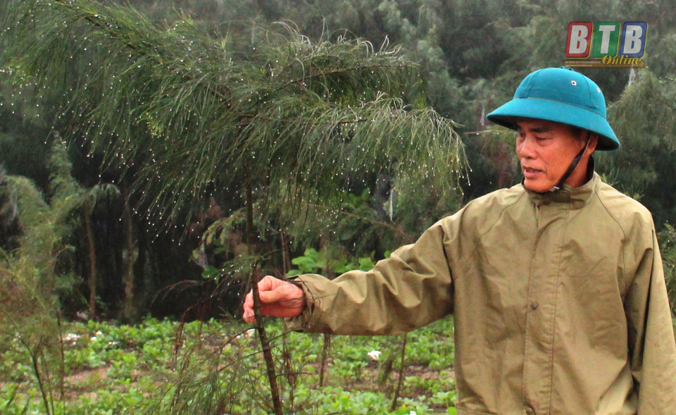 Chìa lòng bàn tay còn in hằn vết khâu dài, ông Tưởng kể cho chúng tôi nghe về những ngày đầu khi nhận khoán, trông coi rừng. Cha con ông Tưởng phải tuần tra suốt đêm, lấy tính mạng của mình để bảo vệ những cánh rừng đang vươn ra biển. Máu của người thương binh vẫn đổ trong thời bình khi chống trả lại những đối tượng chặt phá rừng để nuôi thủy hải sản. Giờ đây rừng đã trở thành một phần trong cuộc sống của gia đình ông Tưởng. Qua gần 20 năm chăm sóc, bảo vệ RNM, gia đình ông đã duy trì và mở rộng hàng chục héc-ta rừng. Trong 30ha đấu thầu, ông dành 1ha phục vụ ươm nhân cây giống cung cấp cho các dự án trồng rừng trong và ngoài tỉnh. Không chỉ giữ cho rừng mãi xanh, phòng chống thiên tai, thích ứng với BĐKH mà chính rừng đã giúp gia đình ông vươn lên làm giàu, có của ăn của để. Trung bình mỗi năm, ông bán khoảng 6 vạn cây giống, lợi nhuận thu được từ 300 - 400 triệu đồng/năm, tạo việc làm ổn định cho 8 - 12 lao động.